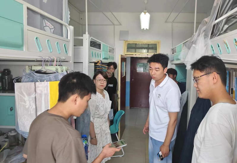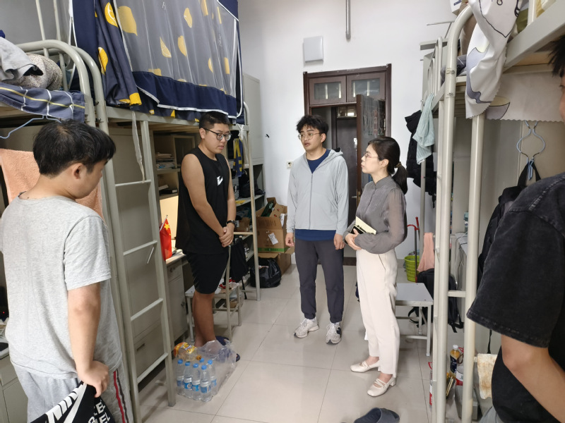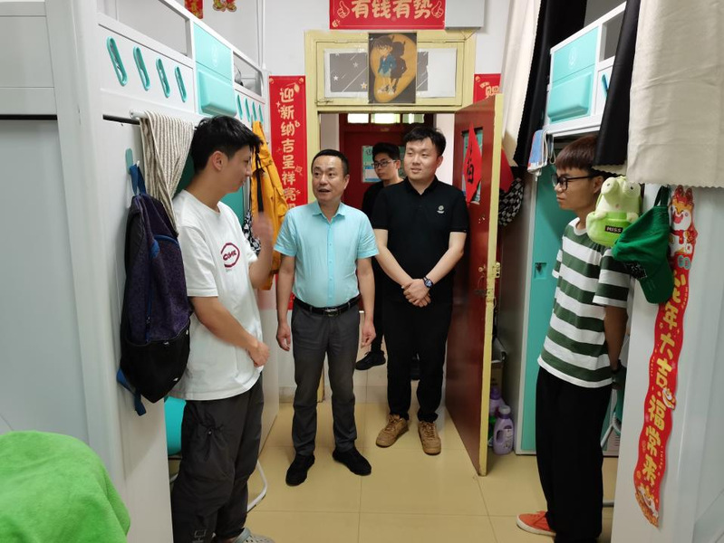 走访过程中,各位领导老师与同学们亲切交谈,共同探讨。在低年级员工宿舍,详细询问了大家近期的课程与考试情况,勉励同学们要珍惜良好的宿舍环境与同窗情谊,认真学习专业基础知识,克服慵懒麻痹思想,以青春之姿、奋斗之态投入到日常的学习生活中去。在高年级及毕业年级员工宿舍,逐一了解同学们当前的学业完成情况与未来的发展规划,认真倾听大家对于学校、学院发展的意见需求,鼓励同学们要以乐观积极的心态面对学习生活中的困难,学院亦将矢志不渝地为同学们的成长发展排忧解难、保驾护航。