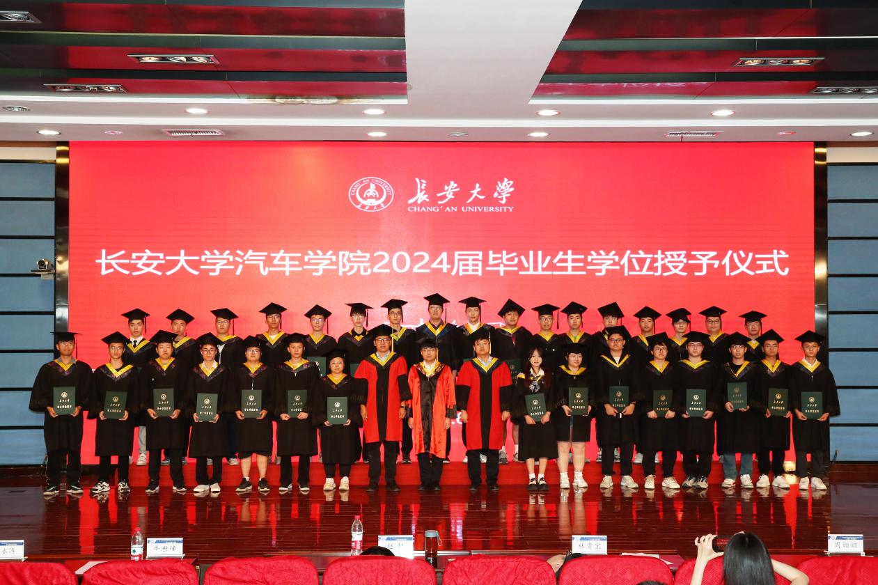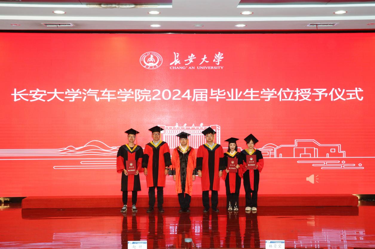 林贵宝宣读授予博士、硕士和学士学位员工名单,2024届毕业生身着学位服,按照专业、班级依次上台。304am永利集团学位评定分委员会主席赵轩教授、委员牛世峰教授和陈轶嵩教授逐一为毕业生拨穗正冠,颁发学位证书,并合影留念。