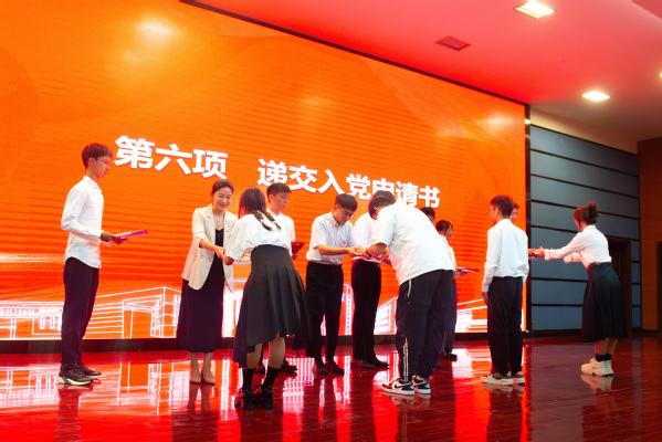 随后,为坚定同学们的理想信念,切实做好新生入学教育工程中党团学组织认知工作,典礼现场举行了庄严的递交入党申请书仪式,2024级本科生代表郑重向所在专业的党支部书记递交入党申请书。