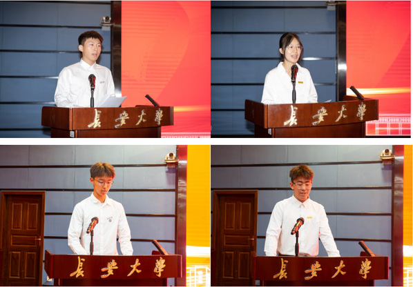 2022级车辆工程系本科生田浩人代表在校生发言,他鼓励同学们立德树品、捍卫真理,勤学善思、开拓创新,志存高远、铸就梦想。2023级交通运输工程专业研究生闫洁婵在发言中提出青年学子应珍惜时光,不负韶华,刻苦锤炼专业本领,践行属于长大汽车人的使命与担当。2024级车辆工程专业本科生于沐晨代表全体本科新生表态:“我们新一级长大学子定当立志做有理想、敢担当、能吃苦、肯奋斗的新时代好青年,一起书写为中国式现代化挺膺担当的青春篇章!”。2024级研究生新生代表郝时杰号召所有同学勤于学习、敏于求知,勇做走在时代前沿的奋进者、开拓者及奉献者。