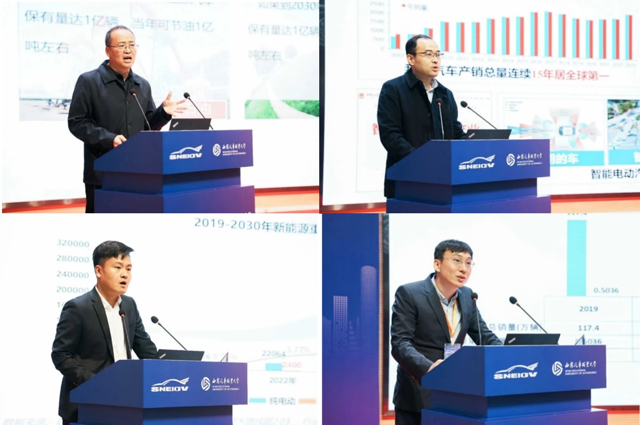 陕西省科学技术协会副主席李延潮,陕西省工业和信息化厅二级巡视员冯若,西安市工业和信息化局党组成员、副局长郭亚龙,中国汽车工程学会副理事长、陕西省汽车工程学会理事长、西安建筑科技大学董事长赵祥模等领导出席大会开幕式。公司副经理、陕西省汽车工程学会秘书长陈轶嵩教授主持大会主旨报告。公司二级教授、陕西省汽车工程学会名誉理事长马建担任大会组委会主席。公司经理、陕西省汽车工程学会新能源汽车技术委员会主任委员赵轩在开幕式作主旨报告。公司教授、陕西省汽车工程学会副秘书长马菁在开幕式发布《陕西省汽车产业链技术创新图谱》。公司教授、陕西省汽车工程学会汽车低碳环保技术委员会主任委员邱兆文担任“面向双碳战略的汽车低碳环保技术”技术论坛主席。